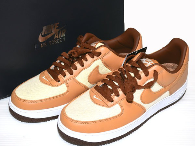 The Nike Air Force 1 Acorn features an Underbrush canvas upper with Natural leather overlays and Swooshes. From there, a white and Acorn sole completes the design.